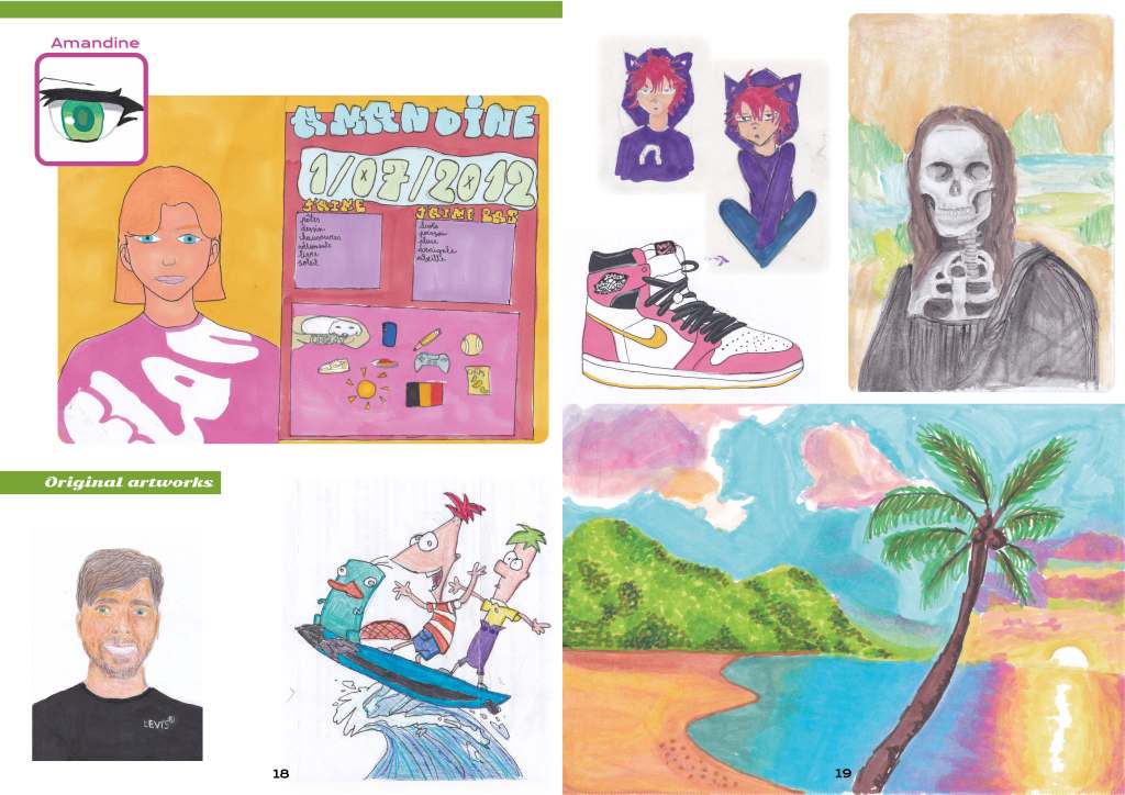 Avec le succès des ateliers du samedi, nous avons créé un recueil de dessins avec les élèves! Ils ont décidé de l’appeler « Infinity Vision ». Chaque chapitre est consacré à un/une élève, avec leurs dessins sur le thème des « méchants en vacances » à la fin du recueil.