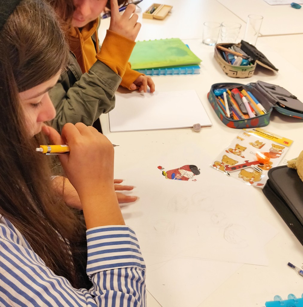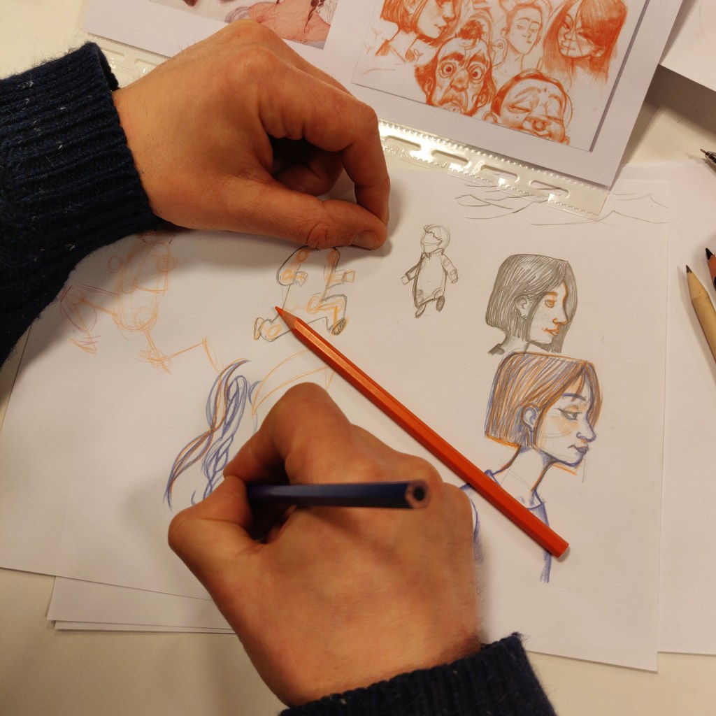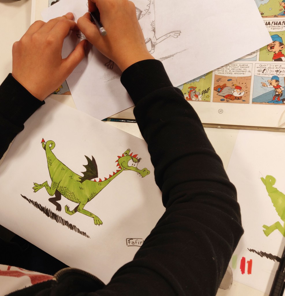 Il ne se passe pas un atelier sans que j’ouvre des yeux ronds par dessus vos épaules. Quand je repense à moi à votre âge, je n’étais pas aussi débrouillard en dessin.